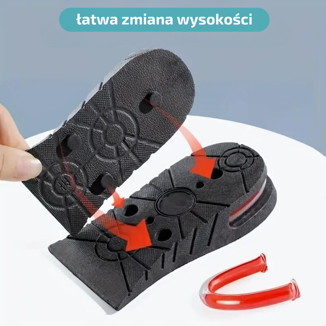 Wyposażone w 4-stopniową regulację oraz dodatkową poduszkę zapewniającą dodatkową amortyzację stopy.